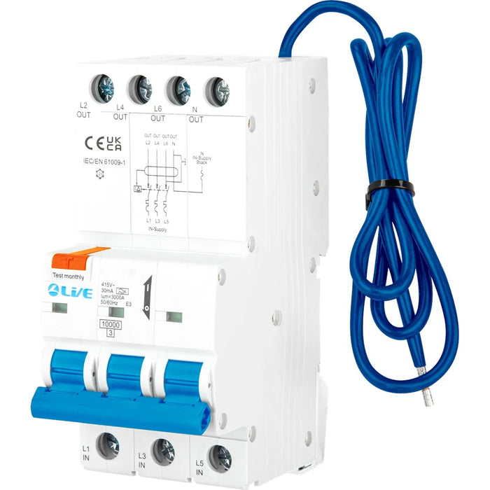 LIVE Electrical RTN363B-030N 3P+N 63A B Curve 10kA 30mA Type A RCBO