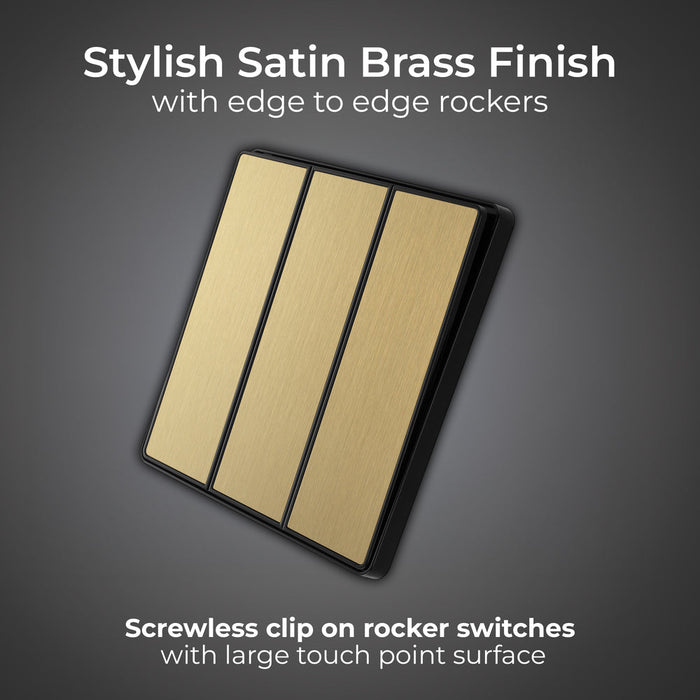 BG Evolve PCDSB43EB 20A 16AX 2 Way Triple Light Switch, Edge to Edge Rocker - Satin Brass (Black)