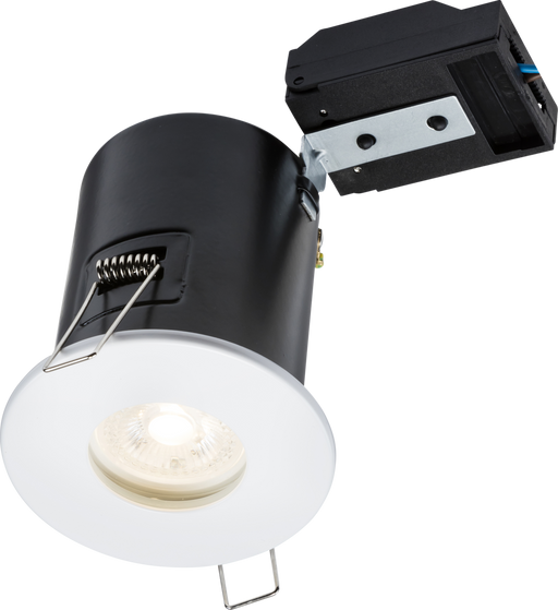 Knightsbridge VFCFIPW 230V IP65 Fixed GU10 Fire-Rated Downlight - White 230V IP65 GU10 35W max. Fire-Rated Downlight with White Bezel. Fast-fix ...