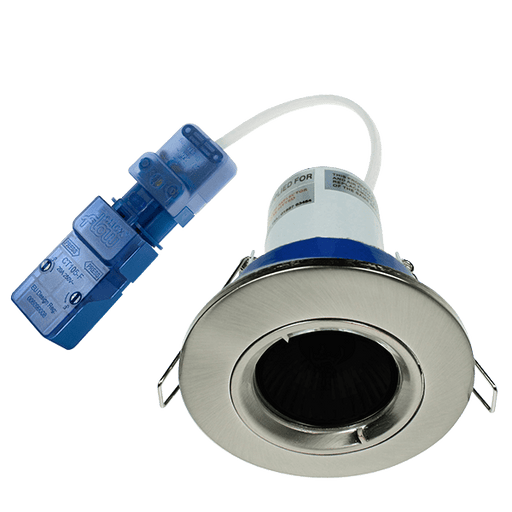 Integral ILDLFR70D004 Evofire Fire Rated Downlight 70mm Cutout IP65 Satin Nickel Round +GU10 Holder & Insulation Guard
