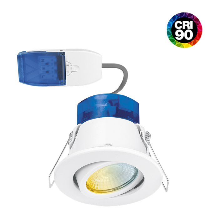 Product DescriptionR6™CWS CRI90 ADJUSTABLE 4-6W COLOUR & WATTAGE SWITCHABLE FIRE RATED DOWNLIGHT WITH FASTRFIX