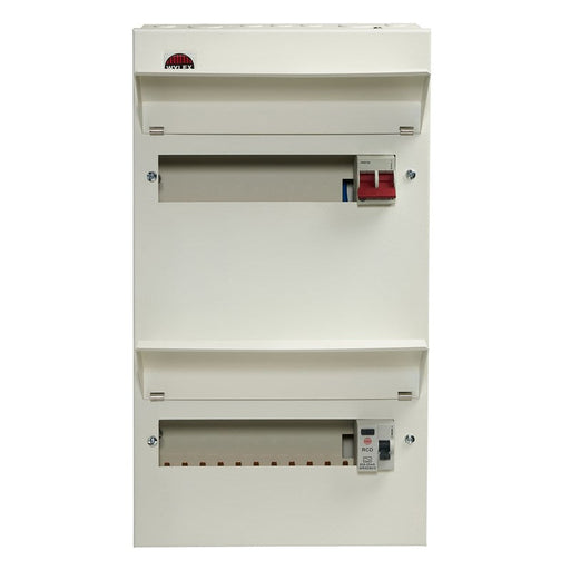 Wylex 16 Way (8+8) Split Load Duplex + 100A Main Switch, 80A 30mA Type A RCD Features Full metal duplex enclosure Fixed busbar assembly 8+8W S...