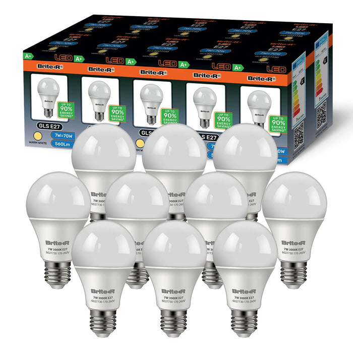 Brite-R 7W E27 ES GLS LED Bulb Warm White 3000K (10 Pack)