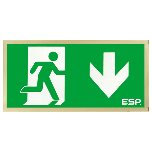 ESP D120DBR Duceri Emergency Surface Exit Box 3W LED IP20 Down Legend Lithium Battery Maintained Brass