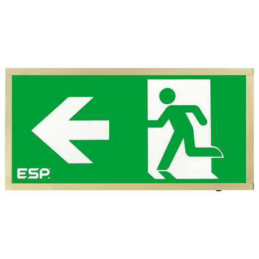 ESP D120LBR Duceri Emergency Surface Exit Box 3W LED IP20 Left Legend Lithium Battery Maintained Brass
