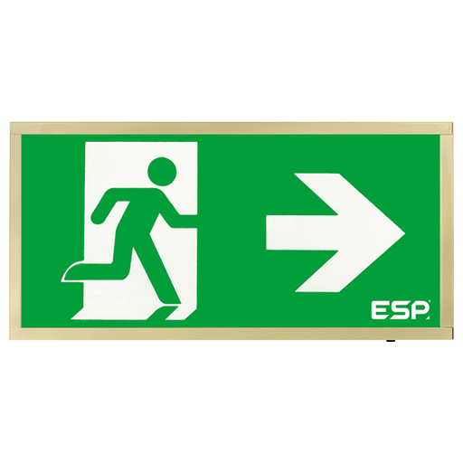ESP D120RBR Duceri Emergency Surface Exit Box 3W LED IP20 Right Legend Lithium Battery Maintained Brass