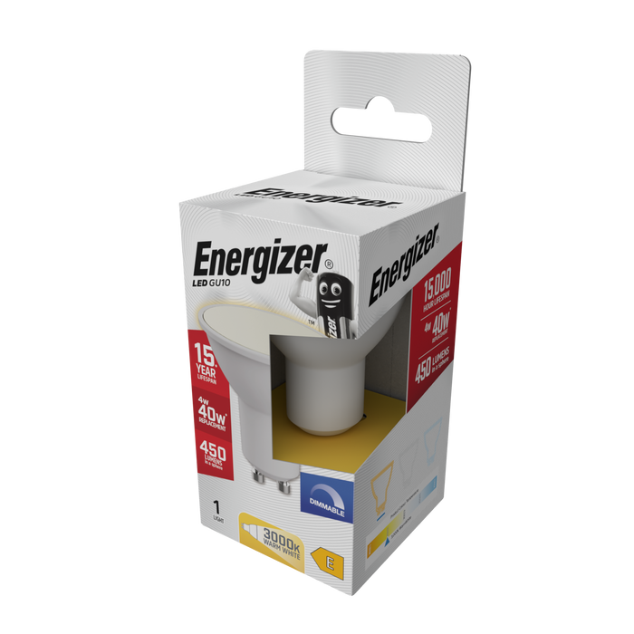 Energizer S29825 4W 450lm GU10 Spotlight LED Bulb Warm White 3000K Dimmable Boxed