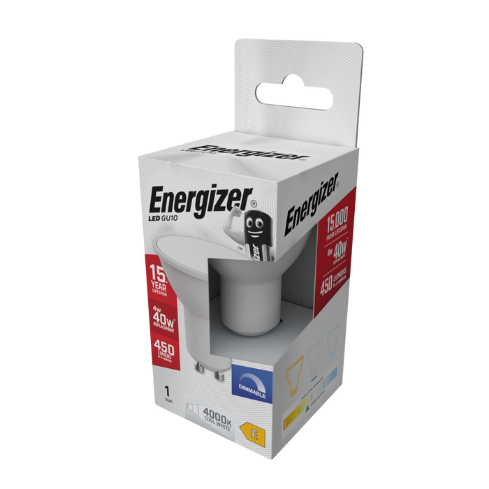 Energizer S29826 4W 450lm GU10 Spotlight LED Bulb Cool White 4000K Dimmable Boxed