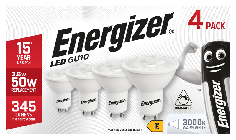 Energizer S10328 3.6W 345lm GU10 Spotlight LED Bulb Cool White 4000K Dimmable (4 Pack)
