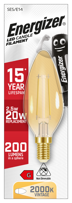 Energizer 2.6W 200lm E14 SES Candle Filament Gold LED Bulb Warm White 2200K