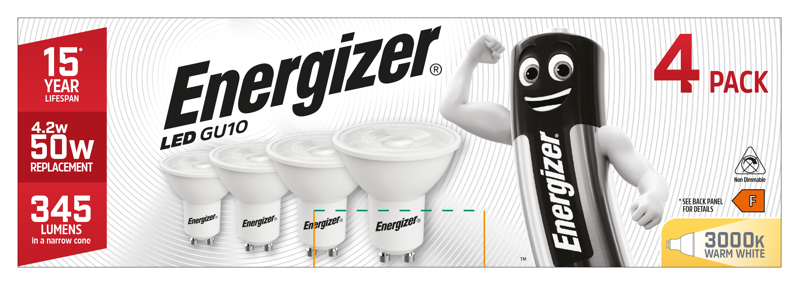 Energizer’s range of LED lamps and fittings for the domestic and commercial lighting markets.Designed with the consumer at the forefront, all Energizer packaging is designed in house, incorporating attractive, colourful and informative shelf ready retail packaging.