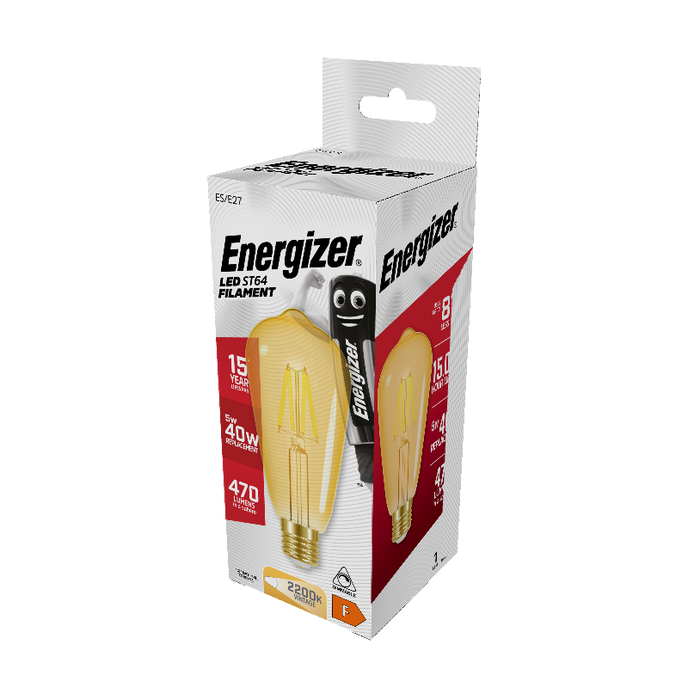 Energizer 5W 470lm E27 ES ST64 Filament Gold LED Bulb Warm White 2200K Dimmable