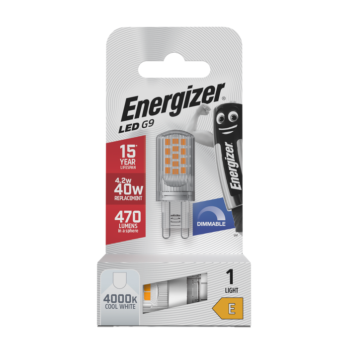 Energizer S29829 4.2W 470lm G9 LED Capsule Bulb Cool White 4000K Dimmable (Box)