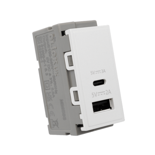 Click New Media MM586WH Dual USB Module 2A Type A 3A Type C - White
