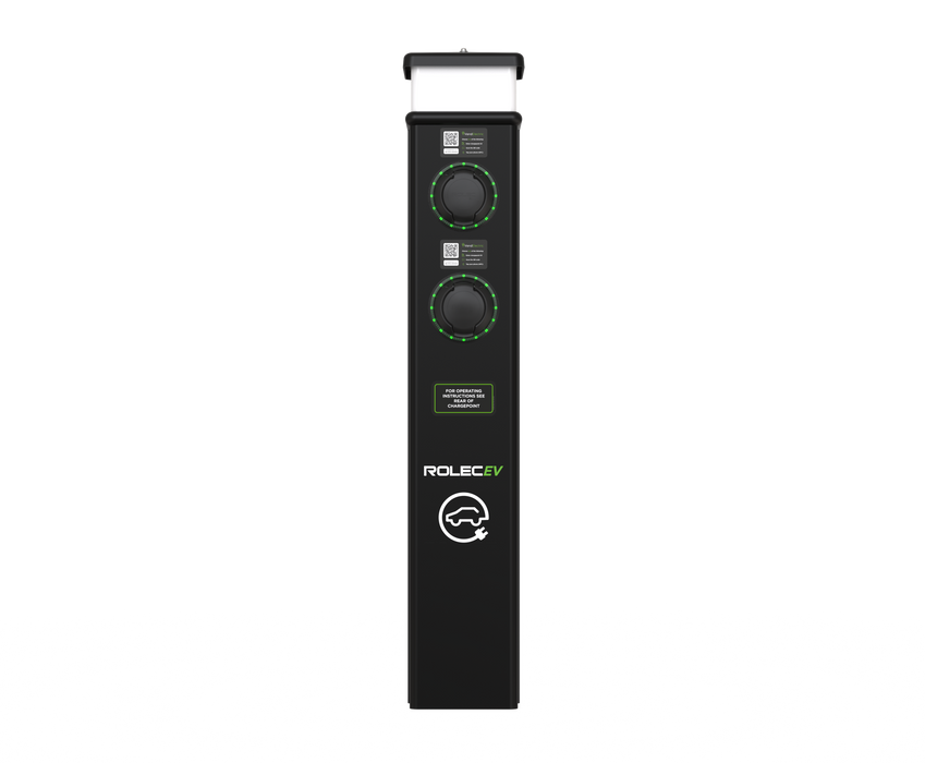 Rolec ROLEC0221B BasicCharge Smart EV Charging Pedestal - 2x up to 7.4kw Type 2 Sockets - Black