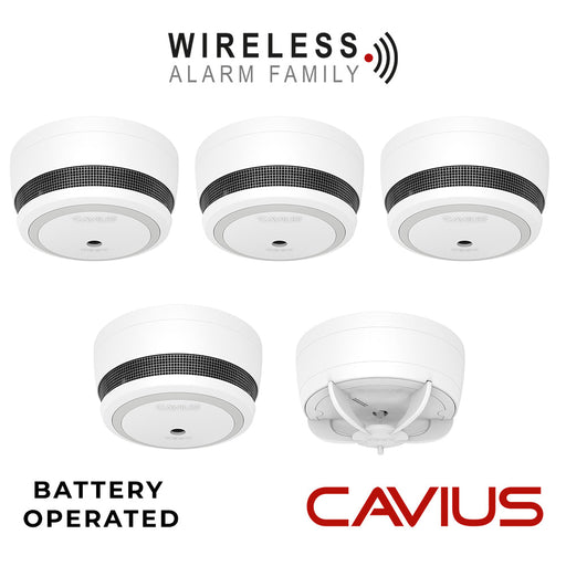 Cavius Battery Powered CV2106 4x Optical Smoke & CV3106 1x Heat Alarm RF 10yr Sealed-in Lithium Battery 4x Battery Powered Optical Smoke Alarm ...