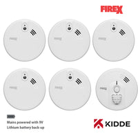Kidde Firex 2x KF20LL Optical Smoke & 1x KF30LL Heat Alarm Kit Mains Powered with Long-Life 9V Lithium Battery Back-Up