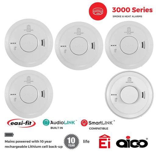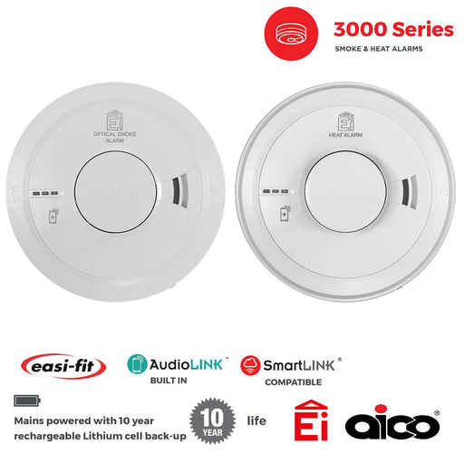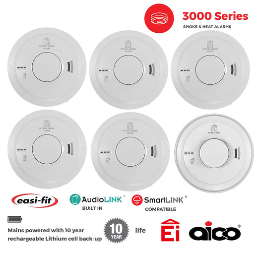 Aico Mains Eco-fit Heat Alarm with Audio/ Smart Link & 10yr+ Lithium cells (10 pack) The eco-fit range is available across the 3000 Series of...