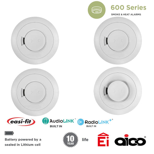 Aico 3x Ei650iRF Optical Smoke & 1x Ei630iRF Heat Alarm Kit Battery Powered RadioLINK with 10 Year Sealed-In Lithium Battery