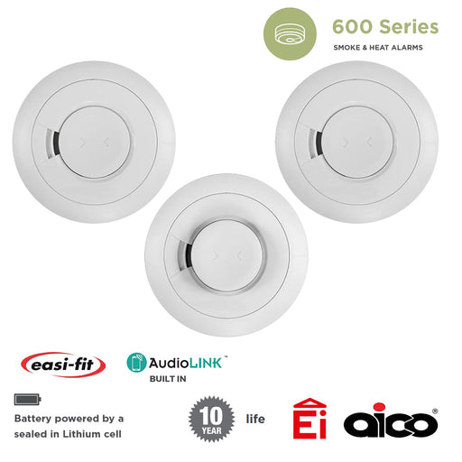 Aico 3x Ei650i Optical Smoke & 1x Ei630i Heat Alarm Kit Battery Powered with 10 Year Sealed-In Lithium Battery