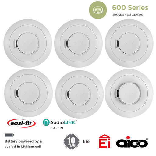 Aico 5x Ei650i Optical Smoke & 1x Ei630i Heat Alarm Kit Battery Powered with 10 Year Sealed-In Lithium Battery