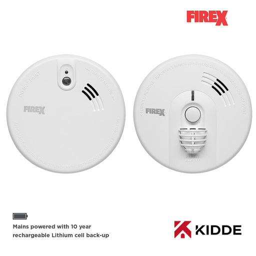 Kidde Firex 1x KF20R Optical Smoke & 1x KF30R Heat Alarm Kit Mains Powered with Sealed-In Rechargeable Battery Back-Up