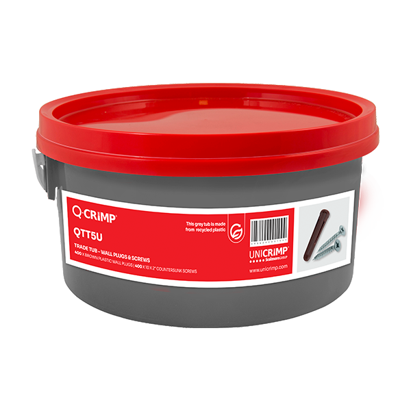 Unicrimp QTT5U Trade Tub - 400 x Brown Plastic Wall Plugs & 400 x 10 x 2” Countersunk Screws