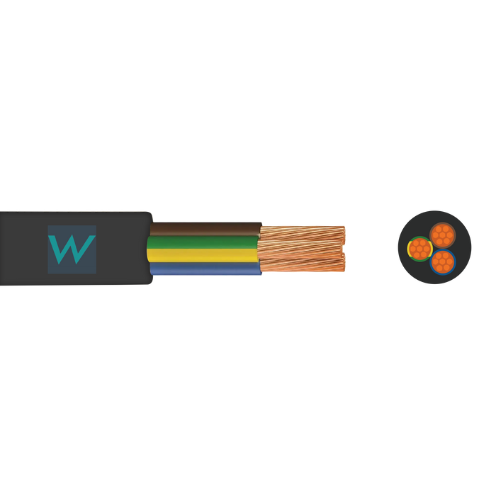 Light duty cable for use in domestic premises, kitchens and offices. For use with light portable appliances such as radios, table lamps and office machines.