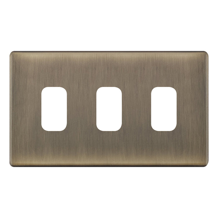 Product Description5M-PLUS Screwless 3 Aperture Modular Front Plate - Antique Brass