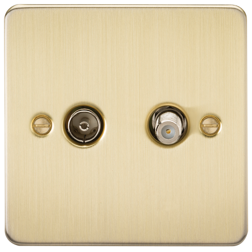 Knightsbridge FP0140BB Flat Plate TV & SAT TV Outlet (Isolated) - Brushed Brass