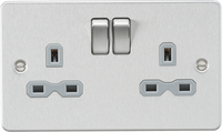 Knightsbridge FPR7000BCG Flat Plate 13A 1G DP Switch Socket – Brushed Chrome with Grey Insert (10 Pack)