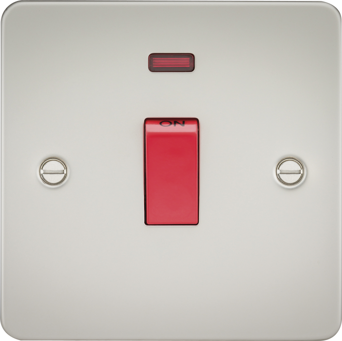 Knightsbridge FP8331NPL Flat Plate 45A 1G Double Pole Cooker Switch with Neon – Pearl Finish