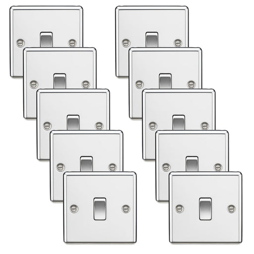 Knightsbridge CL2PCx10 Rounded Edge 10AX 1G 2-Way Plate Switch - Polished Chrome (10 Pack)