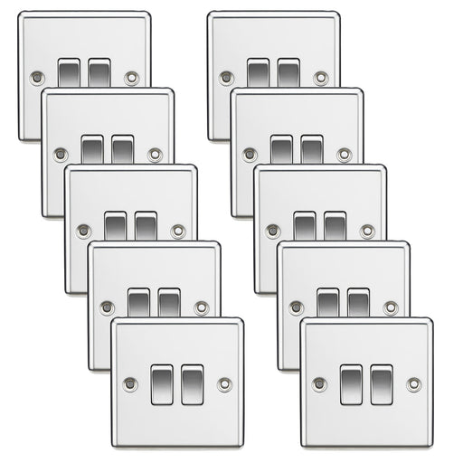 Knightsbridge CL3PCx10 Rounded Edge 10AX 2G 2-Way Plate Switch - Polished Chrome (10 Pack)