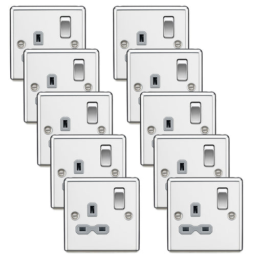 Knightsbridge CL7PCGx10 Rounded Edge 13A 1G DP Switched Socket - Polished Chrome + Grey Insert (10 Pack)
