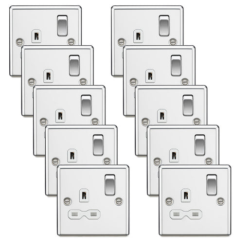 Knightsbridge CL7PCWx10 Rounded Edge 13A 1G DP Switched Socket - Polished Chrome + White Insert (10 Pack)
