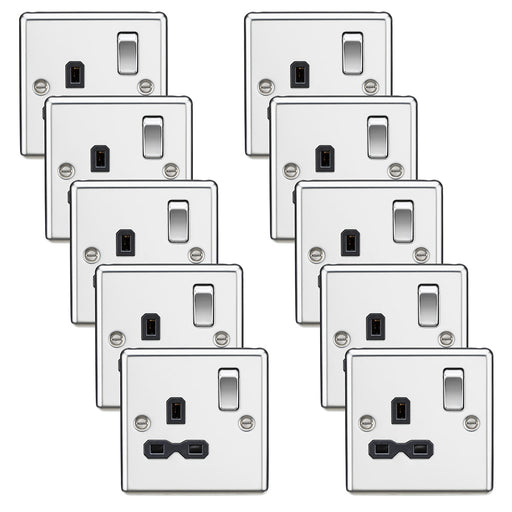 Knightsbridge CL7PCx10 Rounded Edge 13A 1G DP Switched Socket - Polished Chrome + Black Insert (10 Pack)