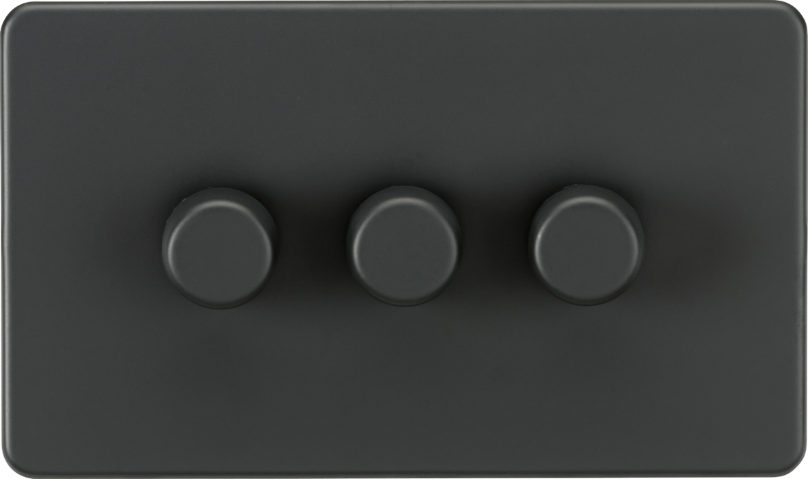The Knightsbridge SF2193AT 3-Gang Intelligent Dimmer is the perfect combination of modern design and advanced lighting control. Its sleek screwless low-profile anthracite finish with matching dimmer caps makes it an elegant choice for contemporary interiors.