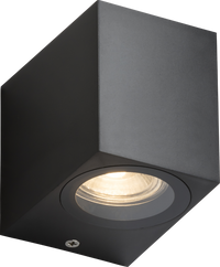 ALANA IP65, polycarbonate construction, GU10 single wall light in matt black finish. Discreet and sleek design, the fitting also offers corrosion resistant properties. Weather resistant, low maintenance and ideal for use in coastal areas.