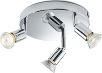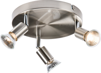 Twin GU10 brushed chrome finish spotlight fitting with adjustable directional heads.