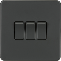 The Knightsbridge SF2000AT 1G 2-Way Light Switch in anthracite is a premium-quality switch with a modern screwless low-profile metal design and matching rocker. Designed to complement contemporary interiors, this switch is both practical and stylish.
