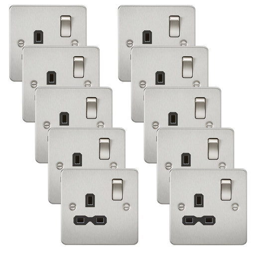 Knightsbridge FPR7000BCx10 Flat Plate 13A 1G DP Switch Socket - Brushed Chrome + Black Insert (10 Pack)