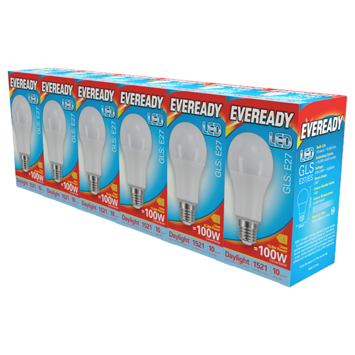 Eveready S29504 E27 ES GLS LED Bulb Opal 13.8W 1521lm Daylight 6500K (5+1 Pack)