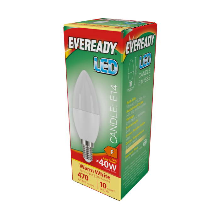 Eveready S13616 E14 SES Candle LED Bulb Opal 4.9W 470lm Warm White 3000K (5 Pack)