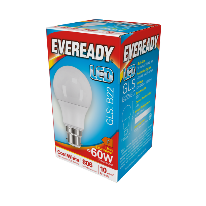 Eveready S14314 B22 BC GLS LED Bulb Opal 8.8W 806lm Cool White 4000K