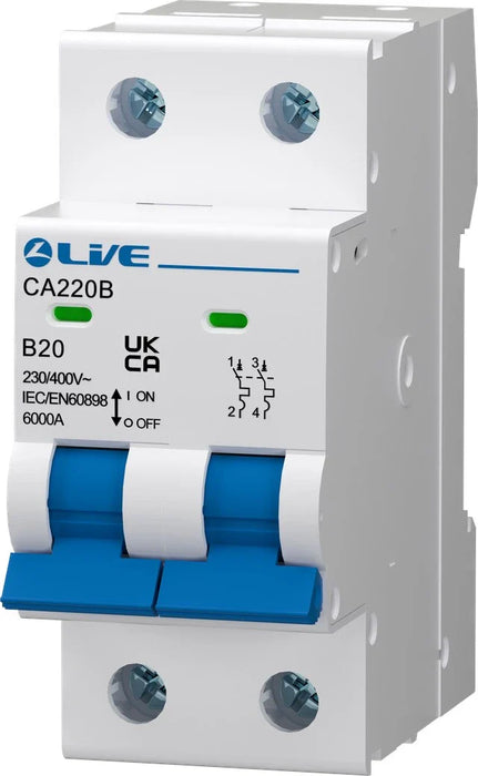 LIVE Electrical CA240B Double Pole 40A B Curve 6kA MCB