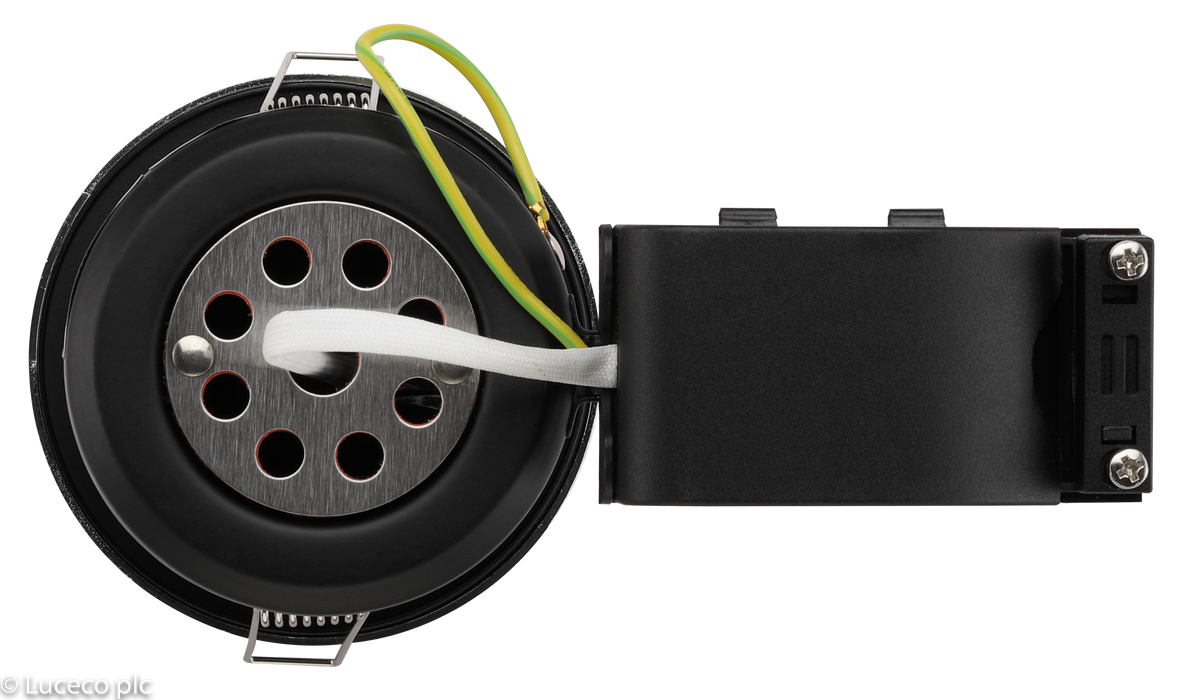 Fixed fire rated GU10 downlight, steel body construction with diecast aluminium lock ring bezel.