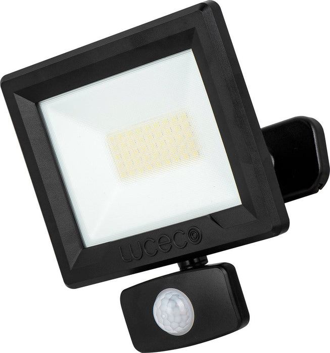 Luceco EFLD30B40P-06 30W Essence Security PIR Floodlight with Ball Joint 1m Cable - Dusk-Till-Dawn Override PIR - Black
