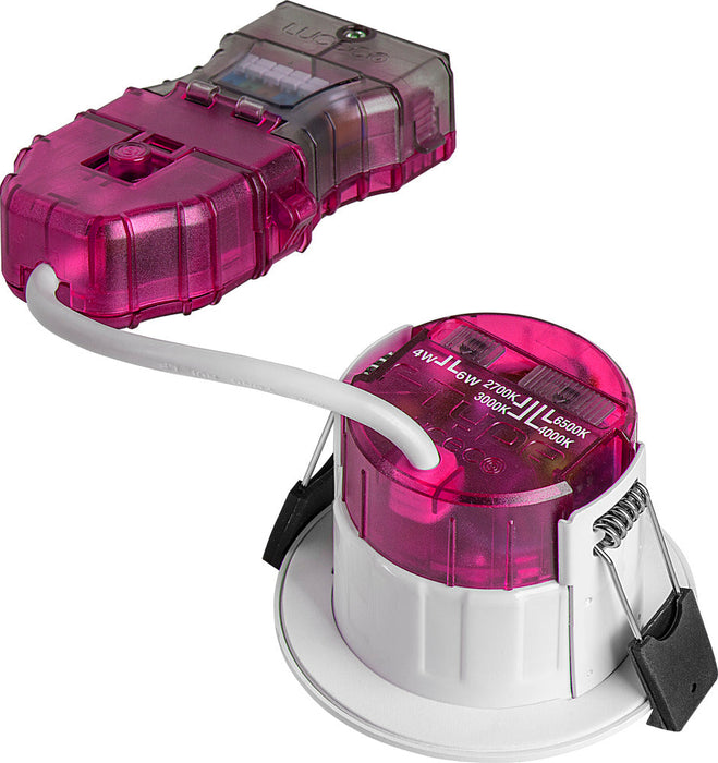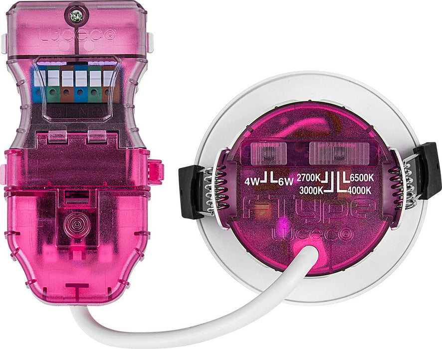 Product Description:Luceco’s FType Elite fire-rated LED downlights are designed for contractors, combining effortless installation with adjustable performance. Featuring the ClipFit connector, tool-free NEL-NEL push-fit terminal block supporting 500V insulation resistance testing, 360° wiring access with QuickView for wiring inspections, and offering 4W/6W power settings and adjustable CCT (2700K–6000K) for tailored lighting in modern spaces. Patented ClipFit connector and NEL NEL tool-free terminal block simplify first and second fix setups. 500V insulation testing connector block allowing you to comprehensively test all installations without the hassle Designed for professionals with 360° wiring access and QuickView inspection for seamless cable management. Power and lighting modes selectable. 4W/6W as standard Choose between Dim2Warm and ColourChange models for complete lighting flexibility