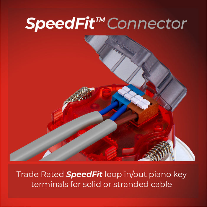 Easy Installation: Trade rated Clip&Fit and SpeedFit loop in/out piano key terminals for solid or stranded cables. Includes 3 -year warranty.